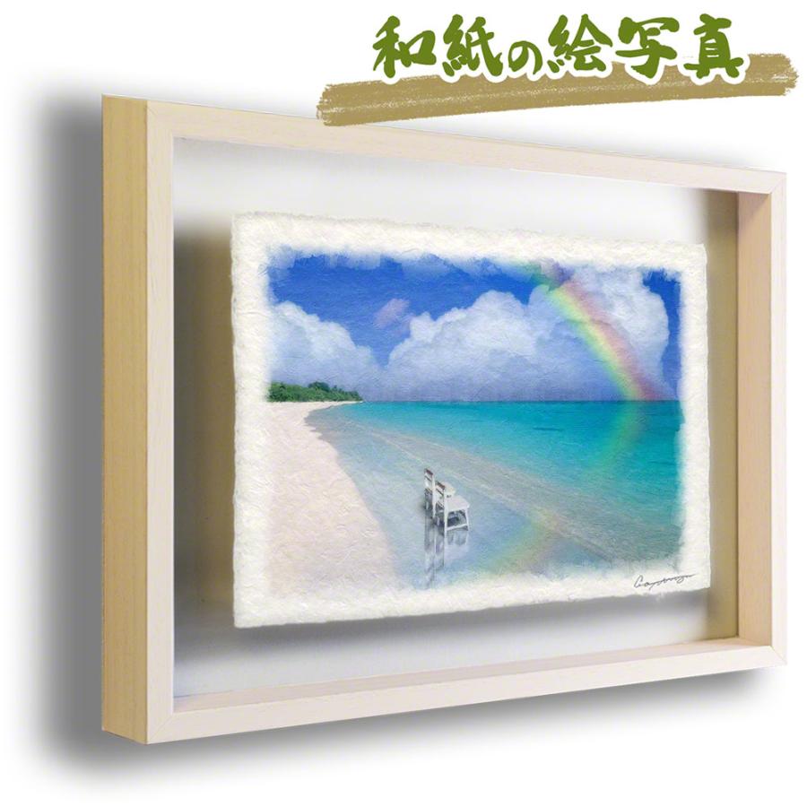 ポスター インテリア おしゃれ 風景 和紙 額入り アート フレーム 海 夏 青 ブルー 珊瑚礁の砂浜と白い椅子 美術 工芸品
